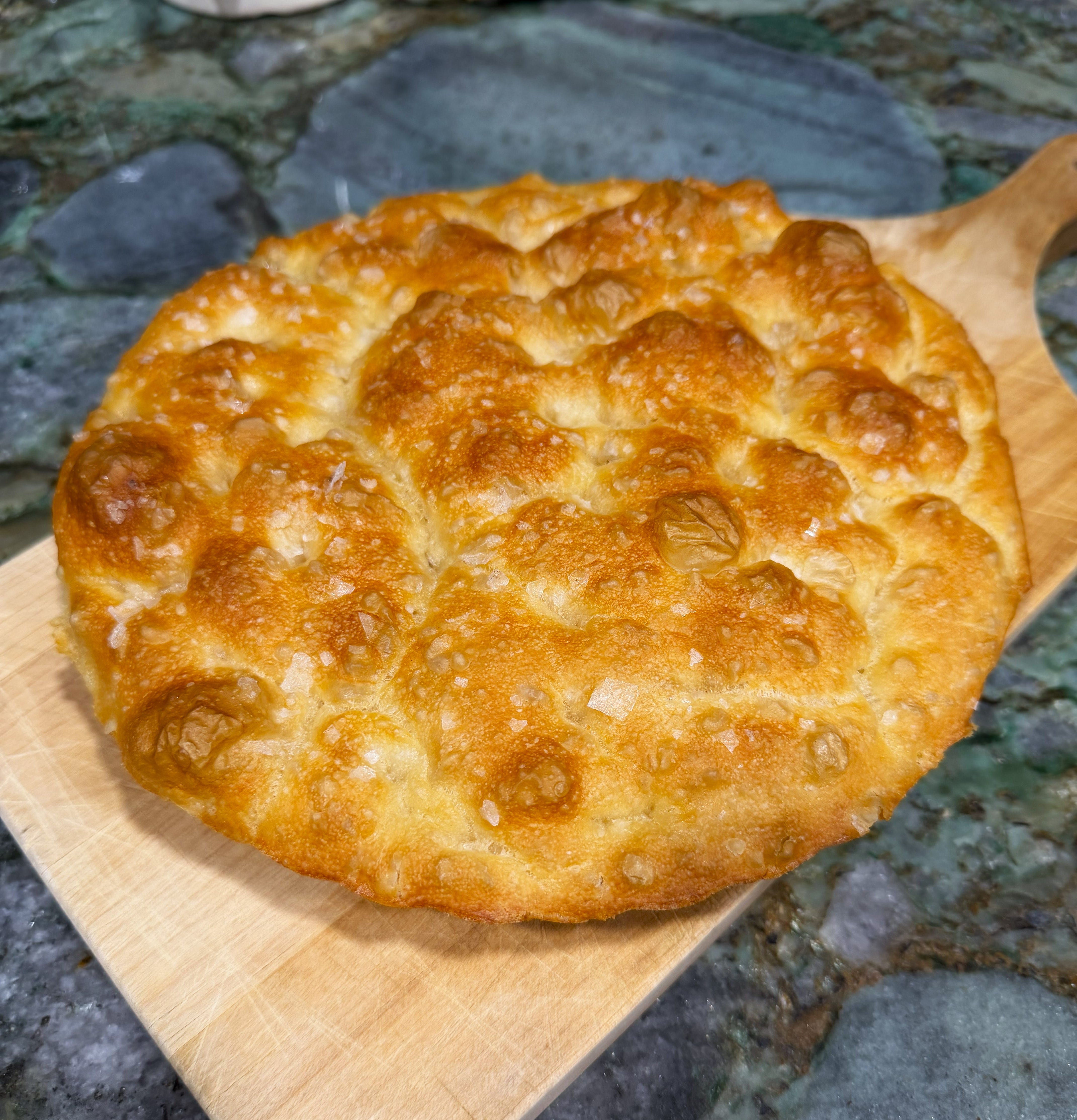 This is the BEST focaccia by far, that I have ever tasted... maybe the best bread! And so easy. The only comment that I would make is that the flakey salt should not be considered optional. Even a little of this salt takes the bread to a whole new level.